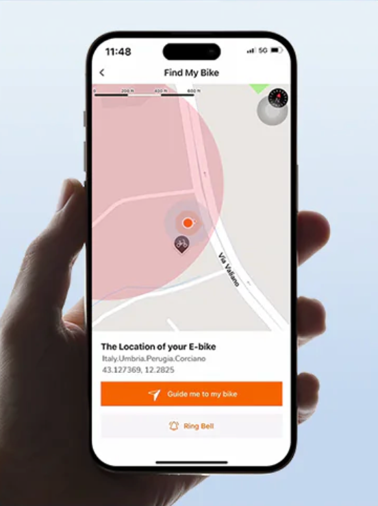 Säkerheten är lika viktig som prestandan. Med det inbyggda IoT-modulen får du realtidsaviseringar direkt i appen om någon rör din cykel. GPS-spårning, rörelsedetektor och appövervakning gör att du alltid har full kontroll – oavsett var du befinner dig.