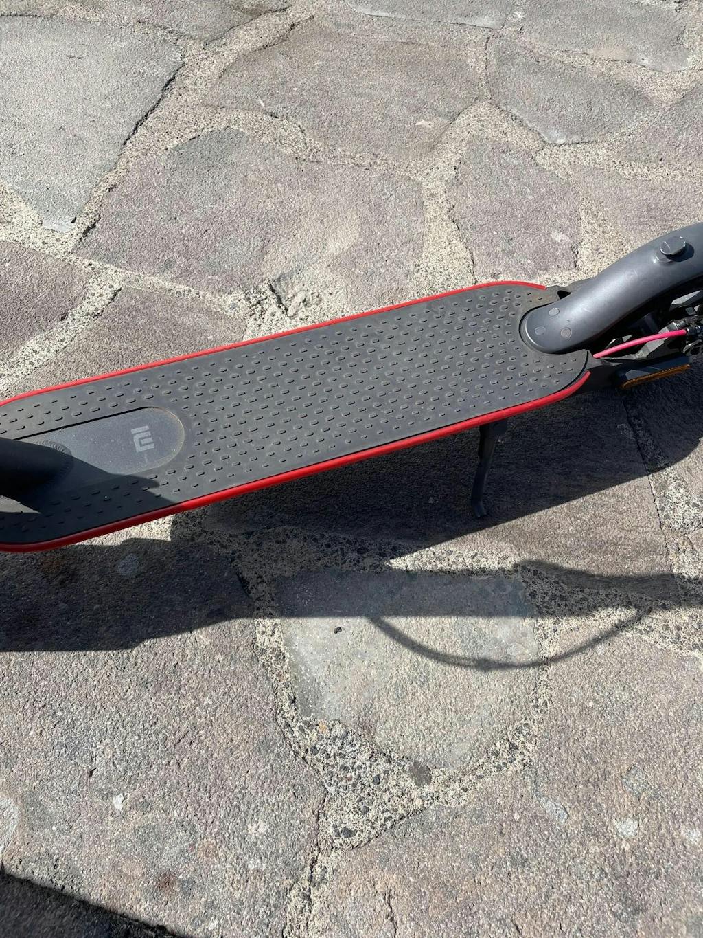 2. Applicera skyddsremsan mot elscooterns plattformskant.